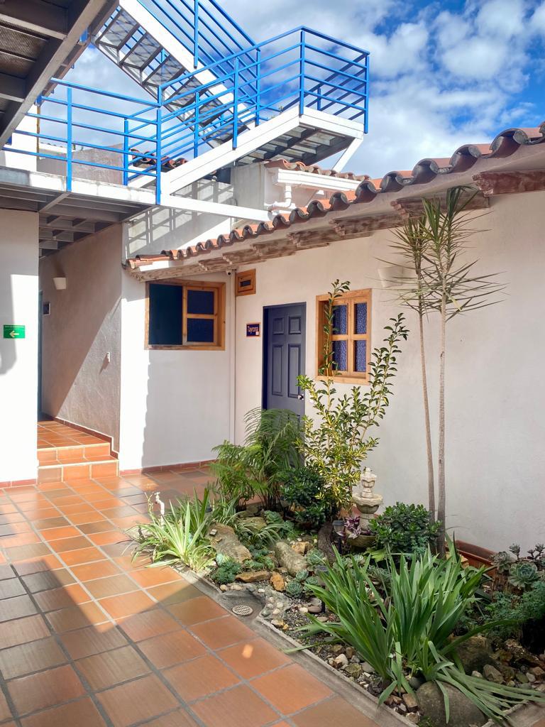 En el precioso patio de la casa se puede degustar un buen café o cerveza colombiana, compartiendo con la lectura de un libro.